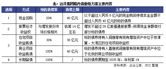 1.现款购回选项:远洋集团以不逾越8亿元的现款,按照债券剩余面值20%的价钱,购回不逾越40亿元的主张债券。按此想象该选项的骨子清偿率仅20%。