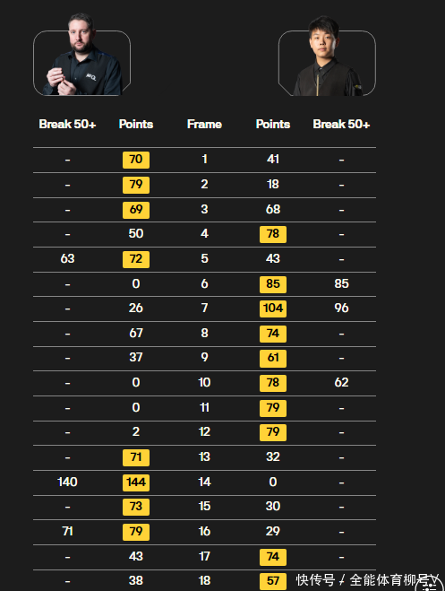 第六局,巩晨智打出单杆67分,90-28再扳一局,3-3扳平比分。第七局,帕特尔以79-55赢下,4-3再度朝上。第八局,两东谈主再次伸开拉锯战,帕特尔以57-46拿下,5-3朝上。